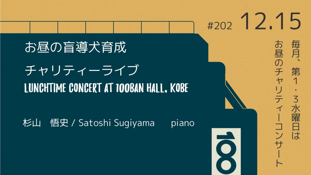 12/15(水)のお昼の盲導犬育成チャリティーライブは、杉山悟史(piano)ソロです。