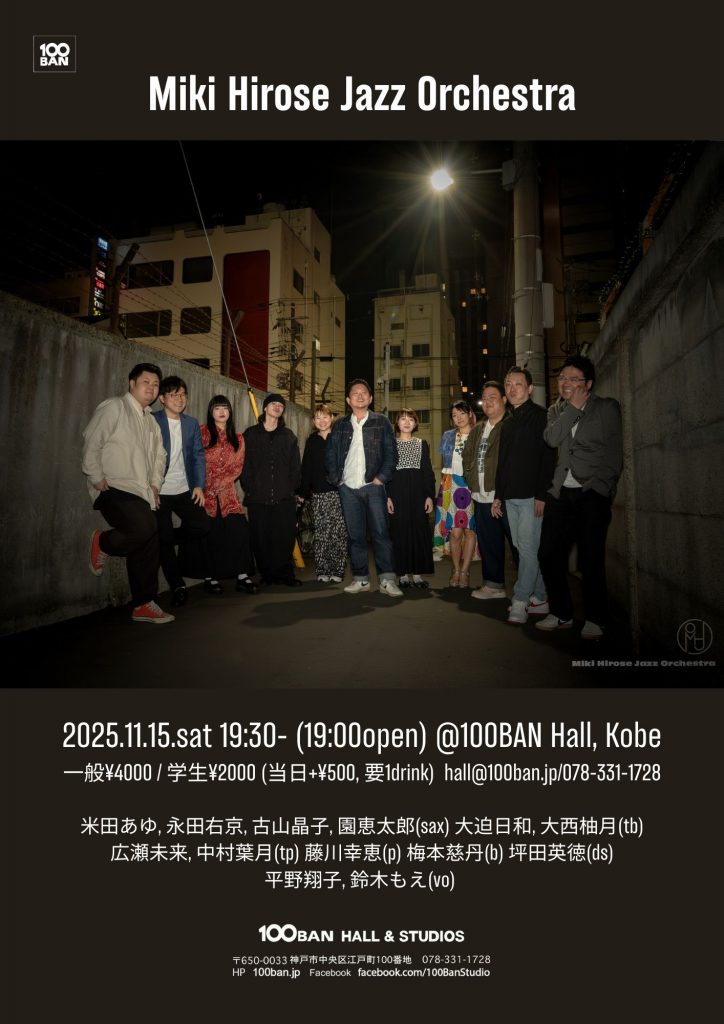 ■Players:広瀬未来, 中村葉月(tp) 大迫日和, 大西柚月(tb) 米田あゆ, 永田右京, 古山晶子, 園恵太郎(sax) 藤川幸恵(p) 梅本慈丹(b) 坪田英徳(ds) 平野翔子, 鈴木もえ(vo)