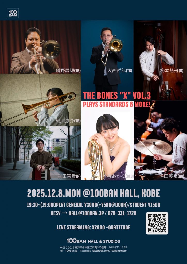 — 関西出身の3人のトロンボ二スト(大西・礒野・細川)を中心に、ジャンルの垣根を超えて、トロンボーンの楽しさを伝えるために結成された、The Bones “X”。今回のテーマは「ジャズスタンダード & more!」 —
