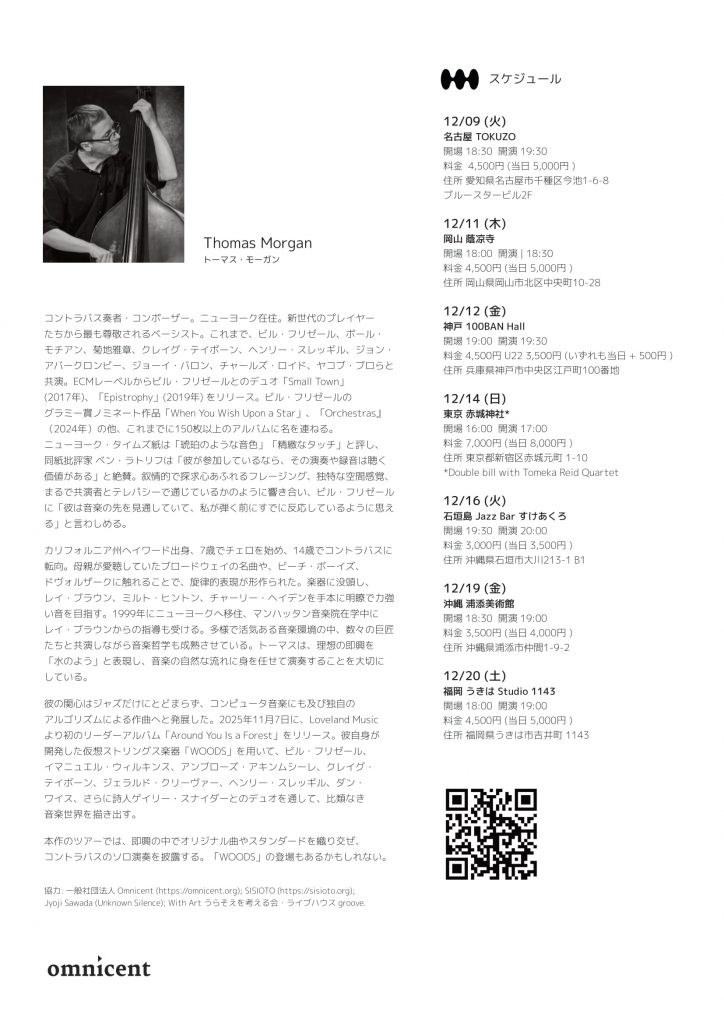 —21世紀のジャズ界を牽引する天才ベーシスト、 トーマス・モーガンによる待望の初ソロ・ツアー神戸公演 —
