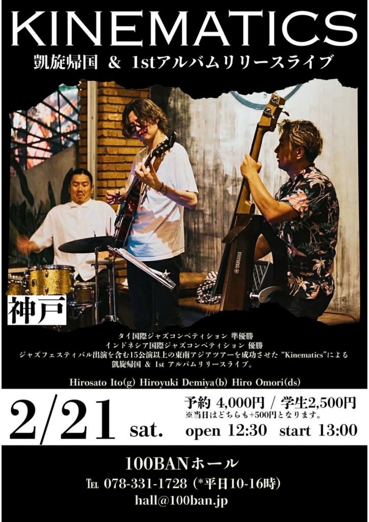 — タイ・インドネシアのコンペティションでの受賞歴を引っ提げ凱旋帰国のギタートリオKinematicsによる1st albumリリースツアー神戸公演! —