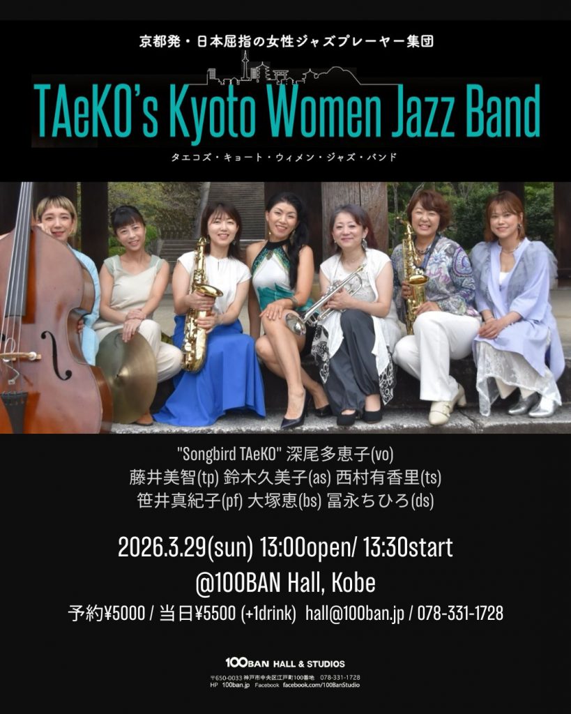 — 京都発女性ジャズプレーヤー集団 ”TAeKO’s Kyoto Women Jazz Band” 神戸公演今年も開催!—