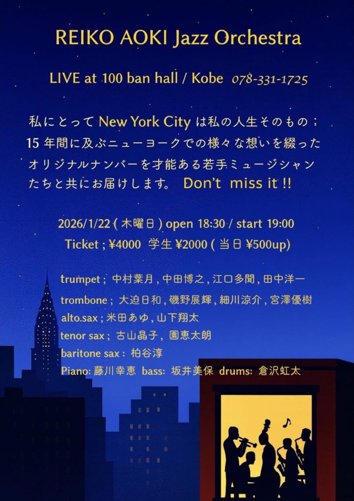 — コンポーザー蒼樹れい子による初のリーダービッグバンドライブ開催! —
