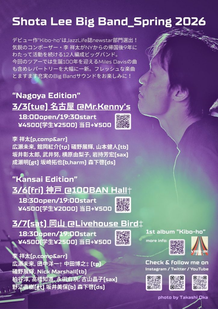 — 気鋭のコンポーザー李祥太率いるビッグバンドの2026年春ツアー神戸公演! —