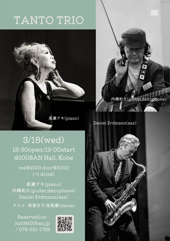 ■Reservation: 100BANホール(078-331-1728, hall(a)100ban.jp)までご連絡下さい。