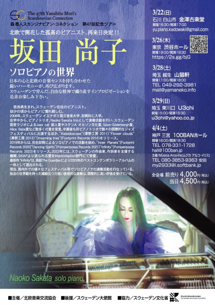 — 北欧で開花した孤高のピアニスト坂田尚子、再来日ツアー神戸公演! —
