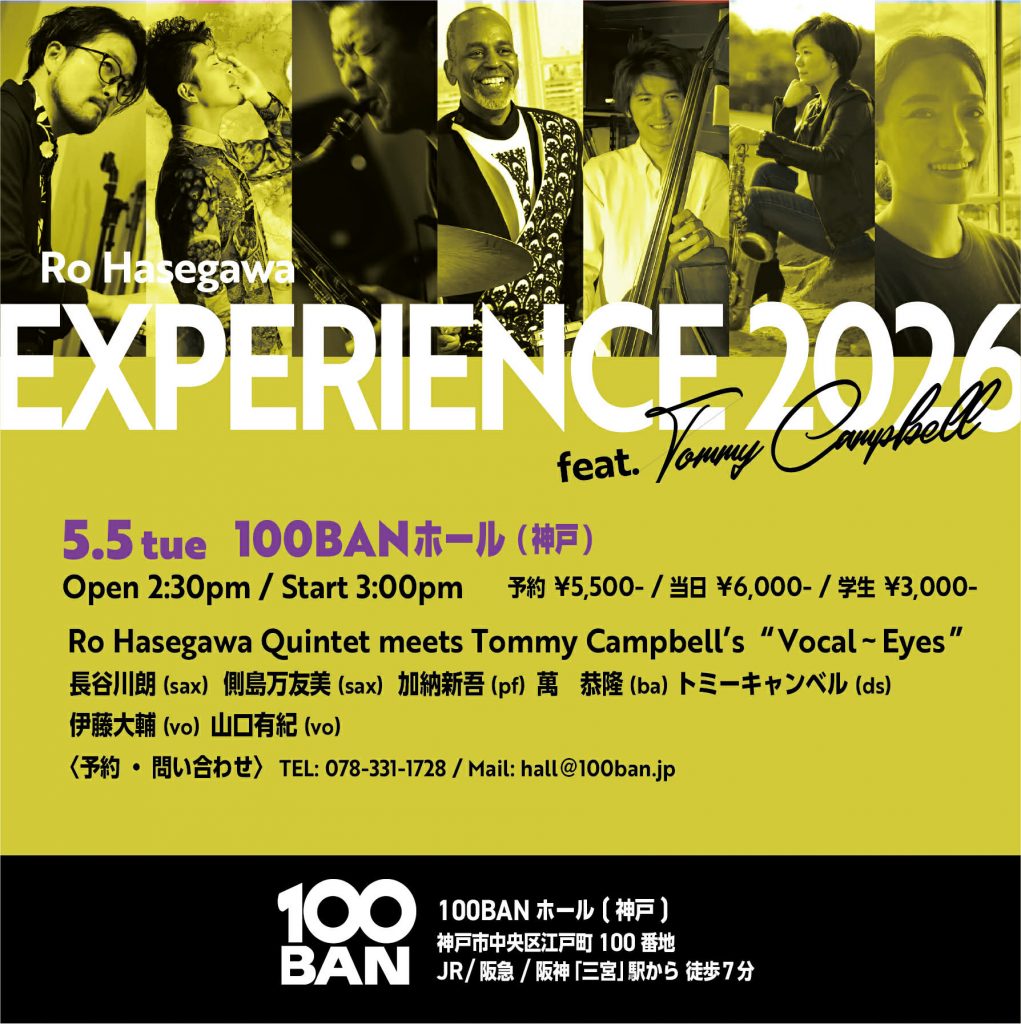 — サックス奏者・長谷川朗が至宝のドラマー、トミー・キャンベルを迎えてのスペシャルツアー、最終日の神戸公演はヴォーカリスト2人のプロジェクト”Vocal-Eyes”! —